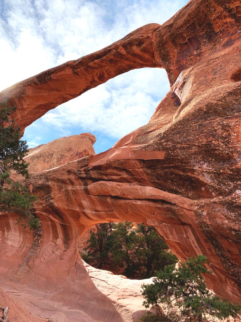 Devils Garden is a difficult trail in Arches National Park. The total distance is 7.2 miles, and the weather is hot, especially at noon. On this trail, you will see different arches, including Pine Tree Arch, Tunnel Arch, the longest landscape Arch, and Double O Arch. It proves that “it is a journey, not a destination”.