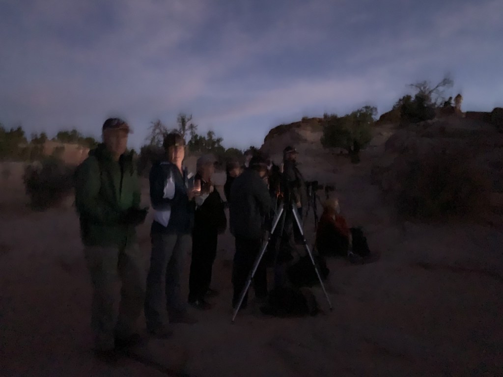 I started hiking in this dark adventure. The trail was three miles roundtrip with an elevation gain of 480 feet. It was definitely a challenge to hike in early morning, because it was a new and unfamiliar trail, a of it uphill, and across sandstone rock faces where the trail can be hard to find. With the cold weather in the morning, it required especially good physical fitness.