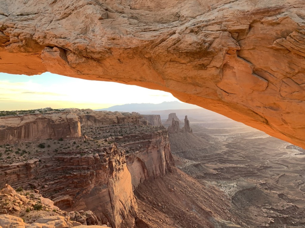It is a small arch. I saw the rays of sun from the dawn out to the horizon beneath the arch. The sun illuminated the underside of the arch, giving a breathtaking view under the arch, showing nature’s craftsmanship again. I loved the orange color shine beneath the arch. This epic sunrise brightened my day again.