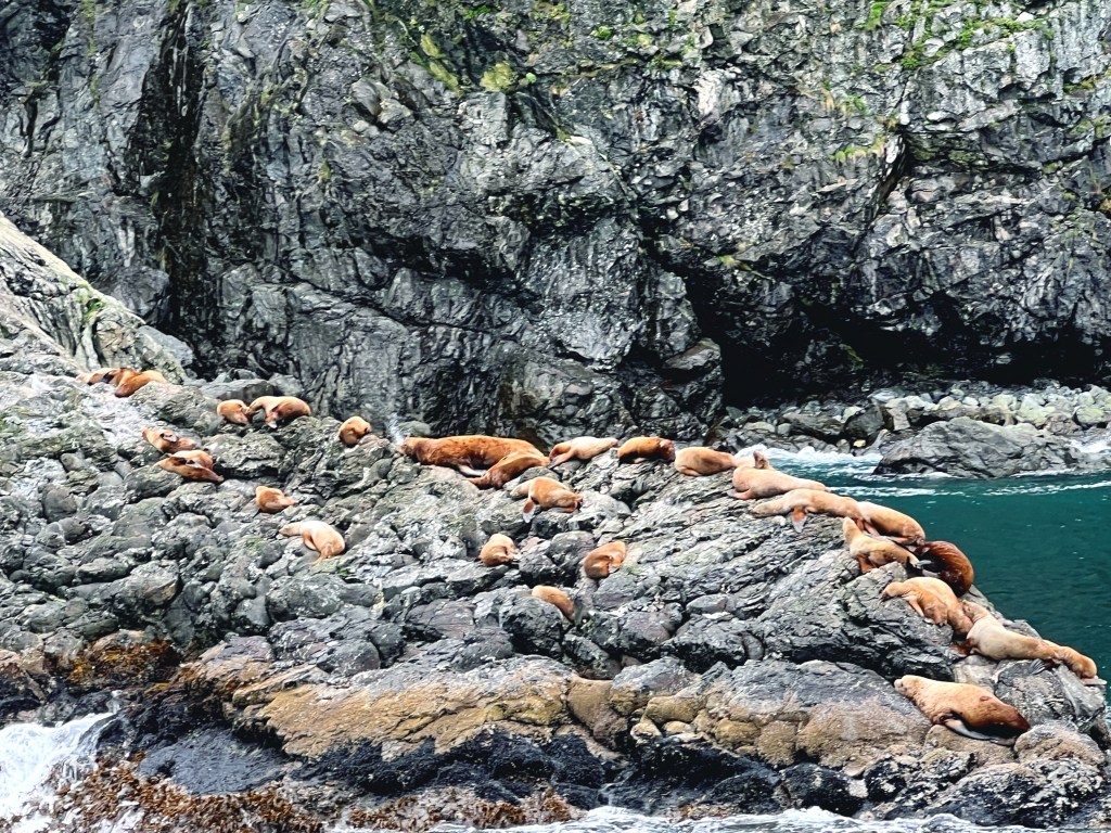 Rivers speak in the low murmur of salmon beneath the surface, and the wind moves through it all like a hand turning pages. I encountered another vivid wildlife at the Solomon Gulch Fish Hatchery, outside the town of Valdez. Dozens of massive sea lions were in the water, searching for delicious salmon. Some swam by with fish clenched in their mouths, while others surfaced with deep, echoing calls that carried across the bay. I stood there, letting the rain soak through me, fully present in the wildness.