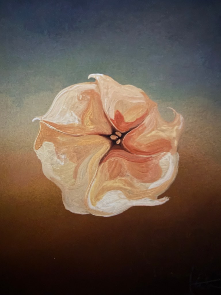 “I am recreating what I see and feel by playing with color and pastel, letting those impressions unfold on the paper.” Her words echoed the spirit of artist Georgia O’Keeffe, who once said, “I had to create an equivalent for what I felt about what I was looking at – not copy it.” This is her way.