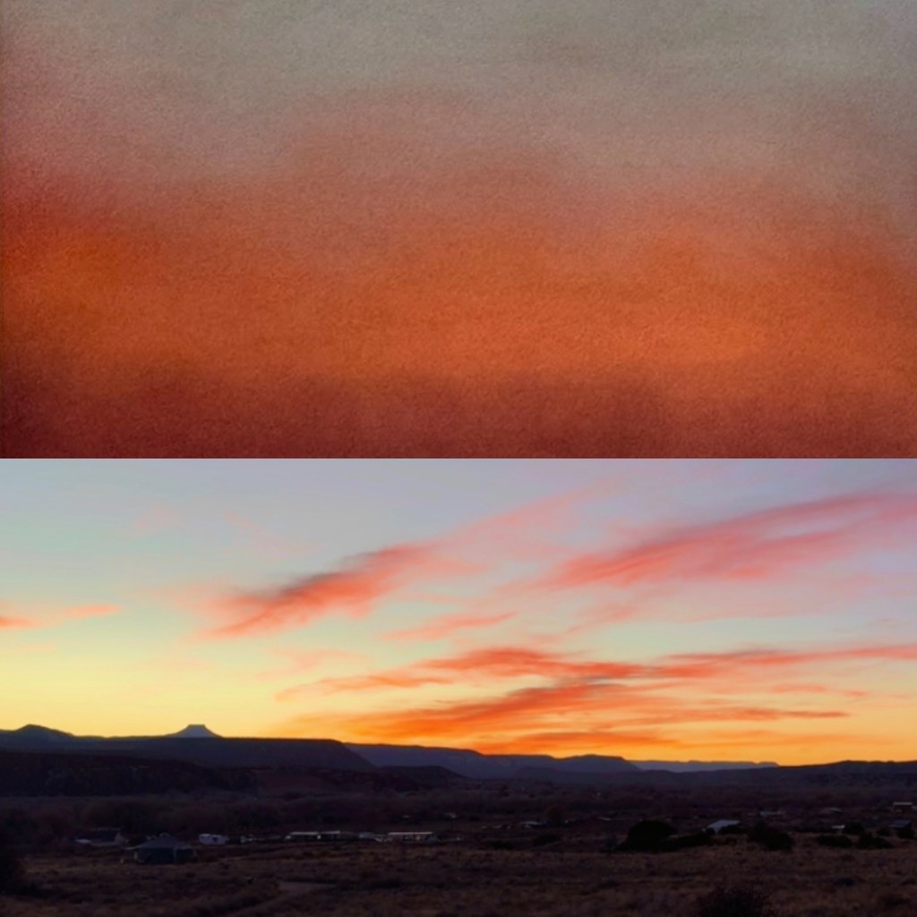 “My pastel works are born from the natural world, and New Mexico has always been a profound source of inspiration. Over the past years, I have explored a new chapter in my art, drawn to the vast skies and the ever-blooming serenity of this land. At the edge where land meets sky, my pastels on paper have guided me, revealing pathways I could never have imagined, whispering where my work is meant to go.”