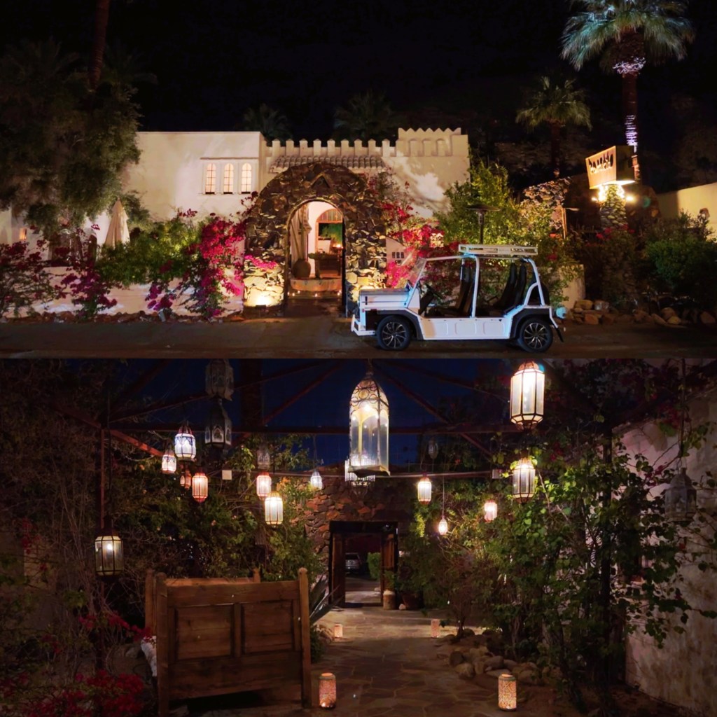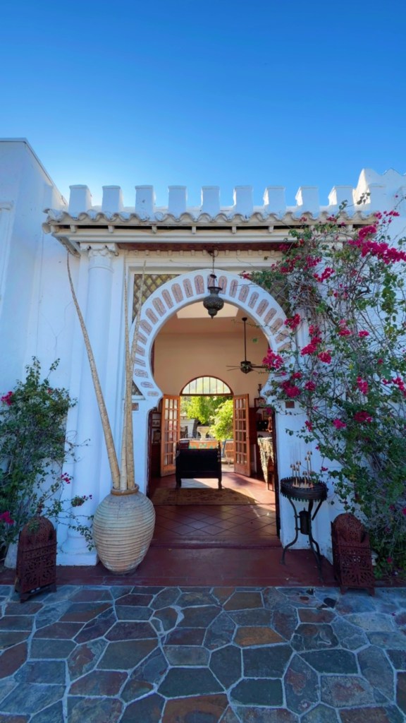 Stars twinkled above as the warm desert breeze moved through the air, filling my heart with quiet contentment. Bougainvillea-draped archways and hanging lanterns cast a gentle glow in the dusk, their light brushing against walls steeped in history and artistry. I watched a vintage film on the outdoor big screen, the fire burning nearby, making the entire space seem to glow from within.