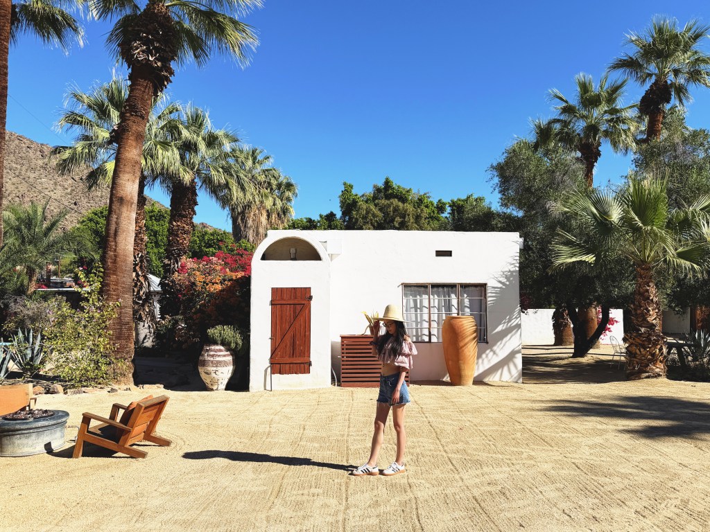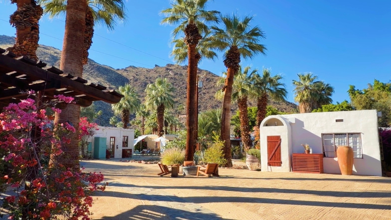 I woke to birds chirping, soft light creeping over the San Jacinto mountains and gardens. I wandered along a blossom-lined path, watching the sun rise above the palms.