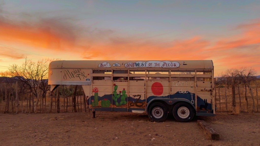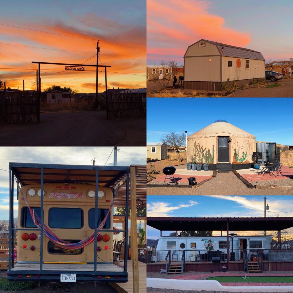 In Alpine, everything is simple, no luxury hotels, no fancy restaurants, just the sky brushed with breathtaking colors, and yet I never grew tired of it. I wandered through all corners of a whimsical playground of vintage trailers, schoolie, yurts, tiny containers, hammocks, and houseboat lines the grounds, bathed in the glow of the bright night sky, where West Texas Ranch meets designer style, nestled within a nomadic community on my adventure roadmap.