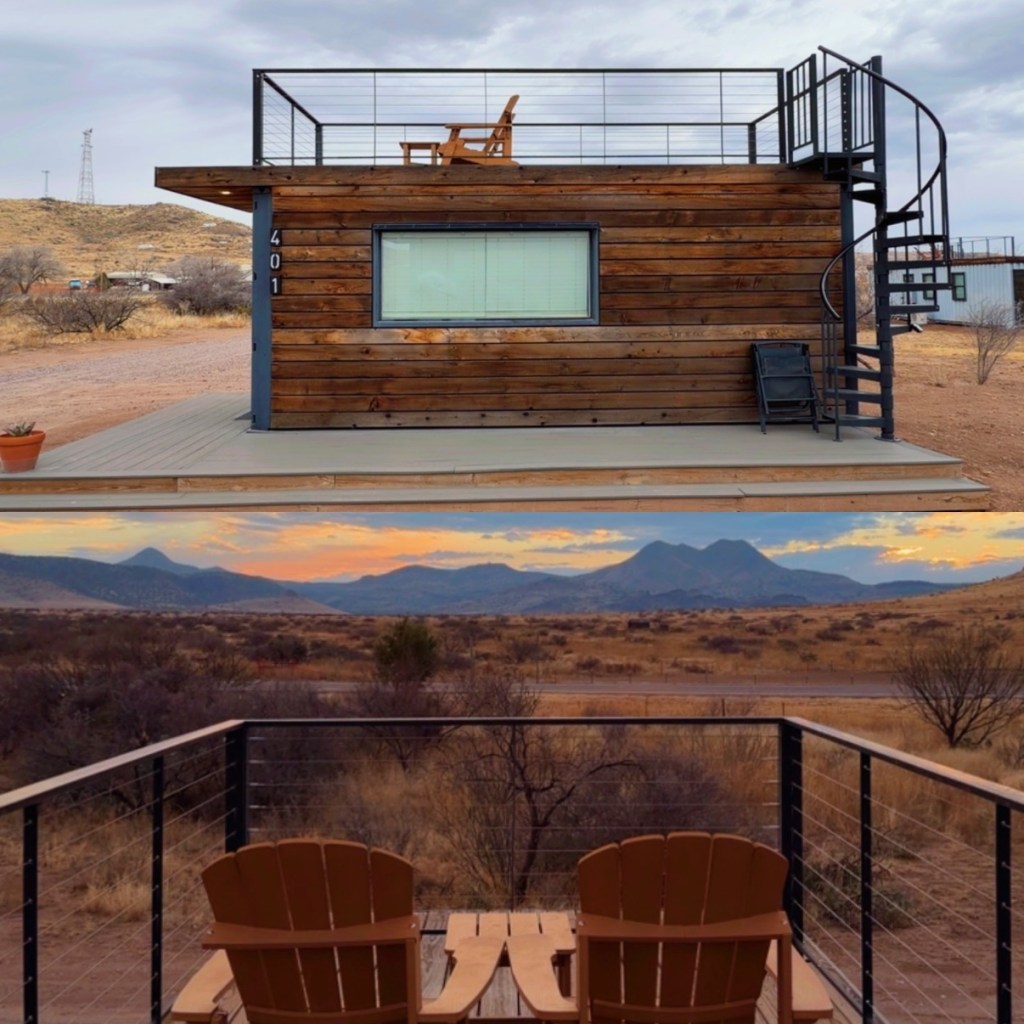 My lens noticed the abandoned containers and trailers scattered across Far West Texas’s vast desert landscapes, hinting at a simple way of life. One had been transformed into a tiny home, which I got to experience firsthand. The original metal structure peeked through, softened by wood cladding and natural tones that faded into the arid surroundings. A playful rooftop deck opened to the endless sky, while modern fixtures and cozy layouts inside maximized space and showcased careful, restrained craftsmanship.