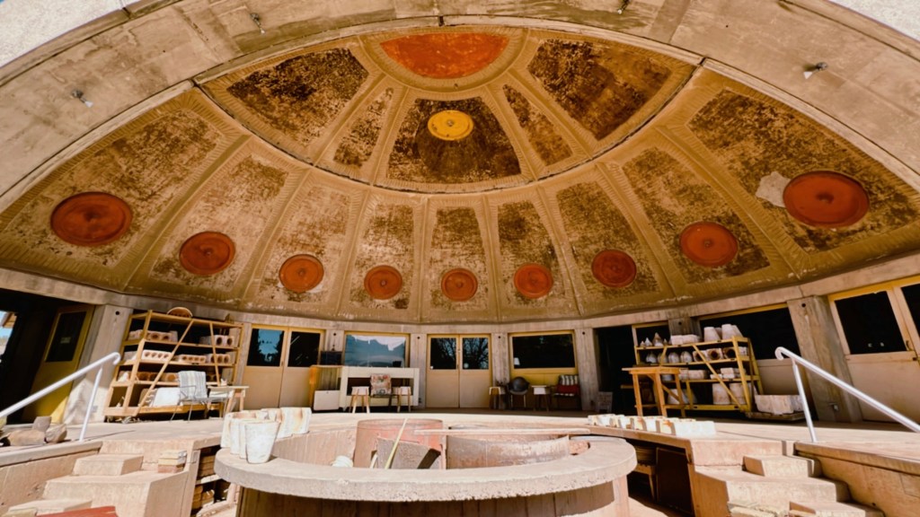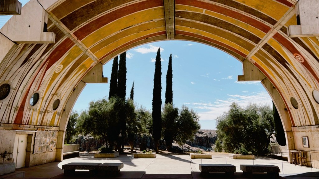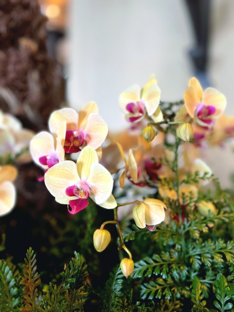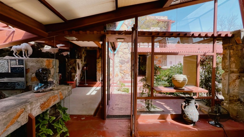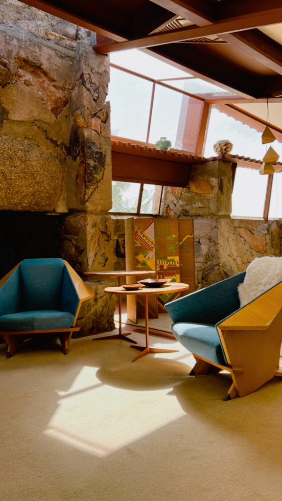 I glimpsed the building’s design: a cantilevered concrete and granite façade rising like an upside-down pyramid, distinctive trapezoidal windows, and a lobby illuminated by countless circular discs, each holding a single silver-tipped bulb, casting a refined and singular glow. I noticed the Breuer lobby gallery, which showcases works from the Collection of Dorothy and Roy Lichtenstein. On one wall hung British Artist Damien Hirst’s Momentary Love Blossom painting, set in contrast to a rainbow-hued concentric square work by Frank Stella that commanded attention, while a Jean Arp sculpture stood nearby, completing the dynamic interplay of form and color.