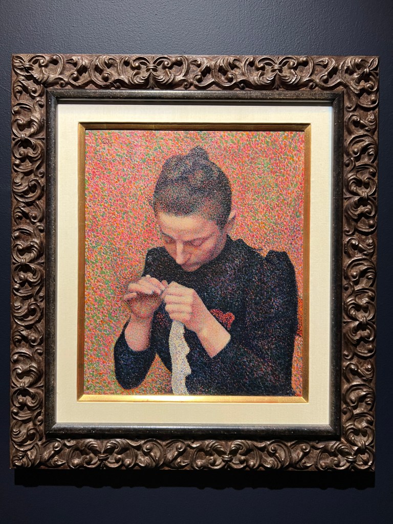 I was drawn to another of Klimt’s works, Waldabhang bei Unterach am Attersee (1916), where his inner world emerges vividly, extending beyond mere physical appearance. The treatment of the painting surface shows his familiarity with Impressionist and Pointillist techniques, yet his approach is more refined, creating a work suffused with a distinctive mood. The painting’s overall green tone is punctuated by vibrant bursts of color from the landscape, and nature clearly sustained him.