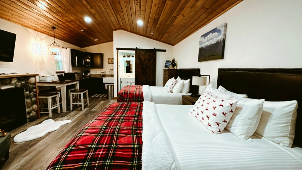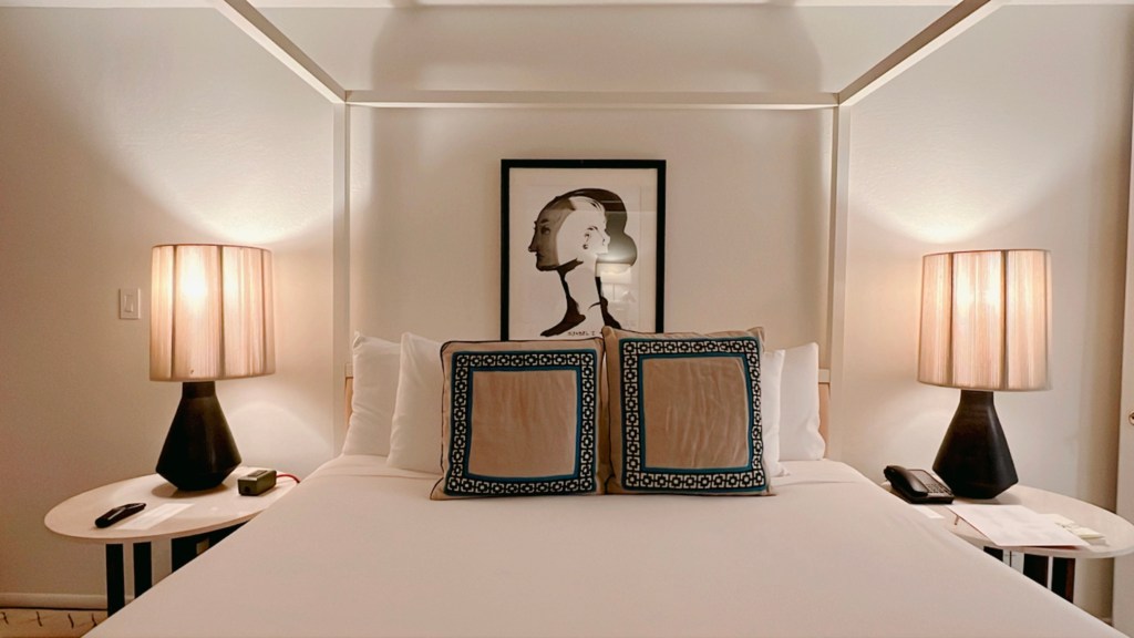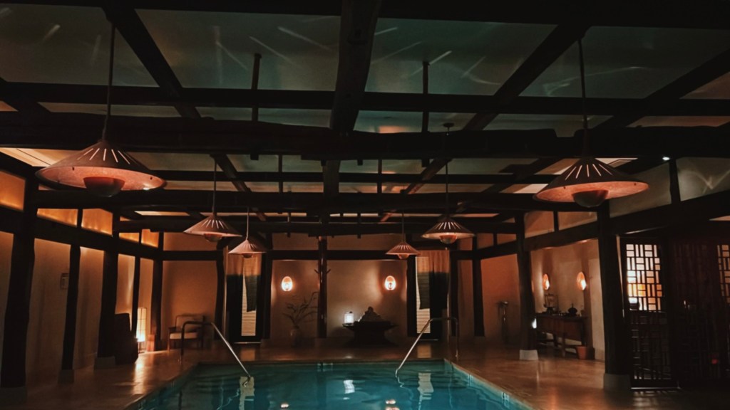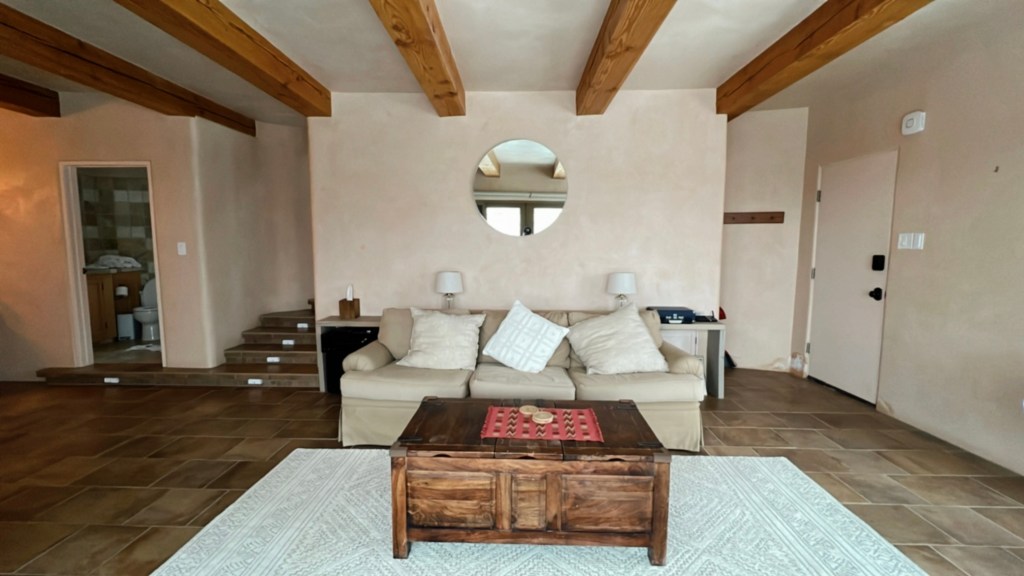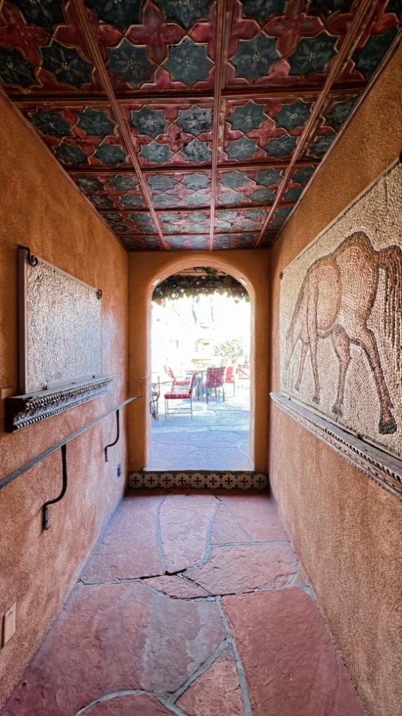 Step through its door, its sumptuous interiors transport me from the Southwest to Central Asia immediately. Designers Ira and Sylvia Seret create a truly seamless aesthetic experience and beyond: millions of tiles made of broken pottery pieces from India, Uzbekistan, Afghanistan and Mexico are intricately assembled to form colorful murals throughout the bathrooms. The room features handwoven Kazak rugs, antique Tibetan cabinets, plush Kazak armchairs, ikat needlepoint tapestries and a historic river rock kiva fireplace, each theme design to inspire creative passion. Time stands still.