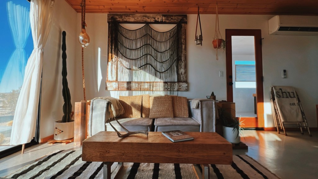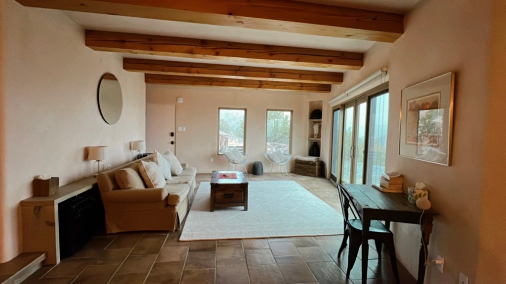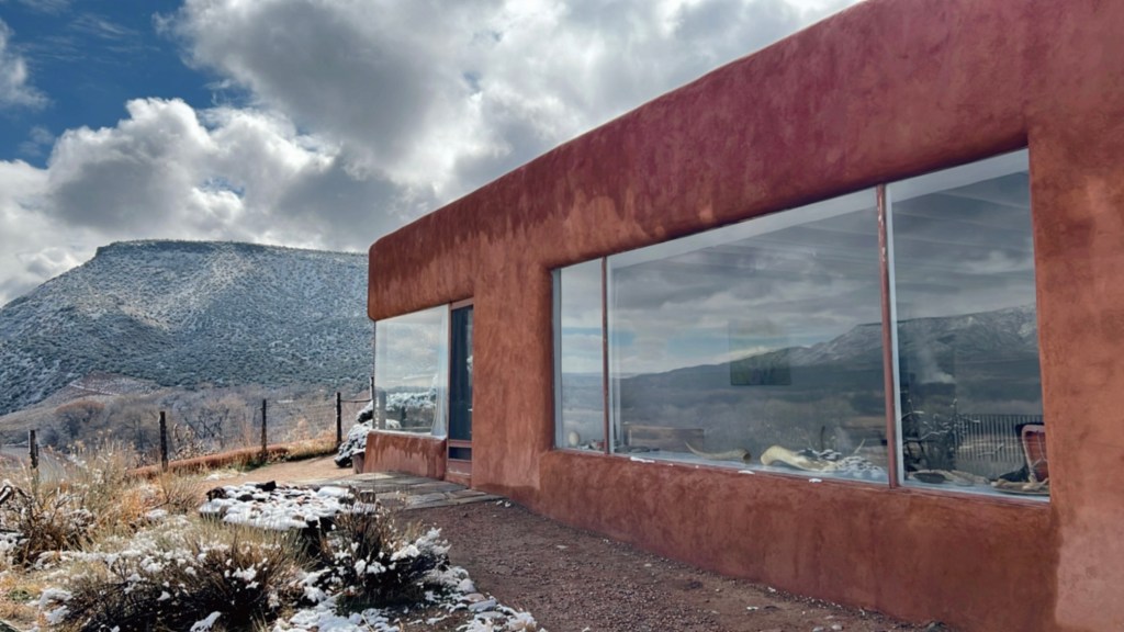 I stayed in an Earthship at Tres Piedras, New Mexico. It was like stepping into a new world, a completely different cool experience, and it changed my mind of how people can live on the planet. The structure effortlessly blends into nature with its generous expansive windows on the southside, provides sunlight for the indoor greenhouse, a testament to sustainable living, allowing nature to become part of the environment. Rainwater and melted snow are caught on the roof, filtered, and then piped to the skinks and a solar-heated shower. Gray water from the shower and sinks hydrates greenhouse plants and then is used to flush the toilet, while sewage is treated and waters an outdoor planter. I learned how the entire system worked, I was drawn to the concept of off-grid living and its practical, Zen-like ambience inside.