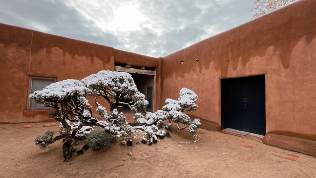 I realize New Mexico architecture is inhabited by the land rather than simply built atop it, reflecting the diverse cultures that left their influences on the region. Spiritual seekers of all kinds, disillusioned with the material world and looking for something else, come here and find freedom to be authentic. It pulls you into the land of enchantment, compelling you to stay until its intensity sends some packing, fleeing from the brightly polished mirror of self-reflection that is its surface, back on the journey of life somewhere else.