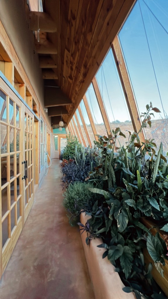 Engaging in the Earthship is a transformative experience. I learned to open and close skylines, it was so fun, also to take brief showers and shut off the faucet while doing dishes. I woke up in an Earthship when it was freezing temperature outside the next morning, but it was warm and comfortable enough to get “lost” in the plants blossoming again.